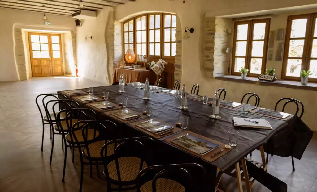 La salle de réunion est parfaitement équipée à tous types de groupe, avec l’ensemble des services et activités fournis par notre équipe ou des prestataires pour assurer la cohésion et l’adhésion des participants à cet événement d’entreprise.