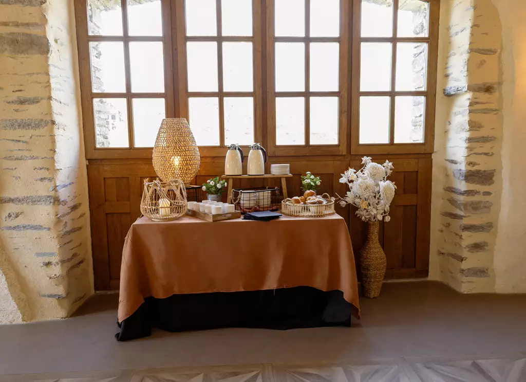 Notre espace de réception, avec ses façades en pierre et son architecture raffinée, peut être entièrement privatisé, garantissant une organisation sur-mesure et en toute tranquillité.